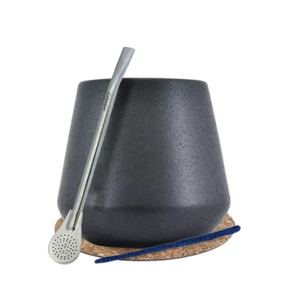 TermoLid - ruostumattomasta teräksestä valmistettu astia kannella - Verde Mate (musta) - 350 ml