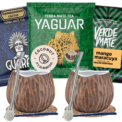 Yerba Mate setti kahdelle 3x50g 150g 2x Calabash + 2x Bombilla