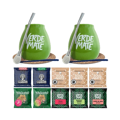Yerba Mate Set 10x50g 2x Calabash + 2x Bombilla