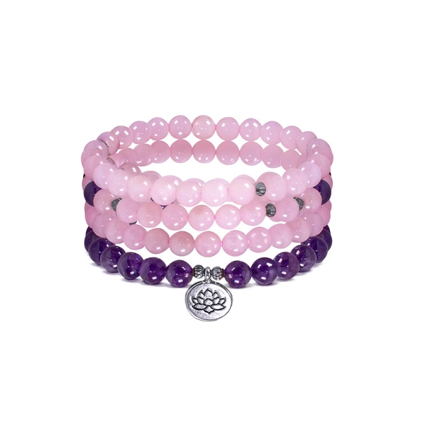 Mala rannekoru ametistilla ja ruusukvartsilla - Lootuksen kukka