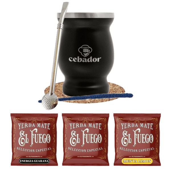 Yerba Mate -Setti: näytteet El Fuego 3x50g + TermoMate + Bombilla