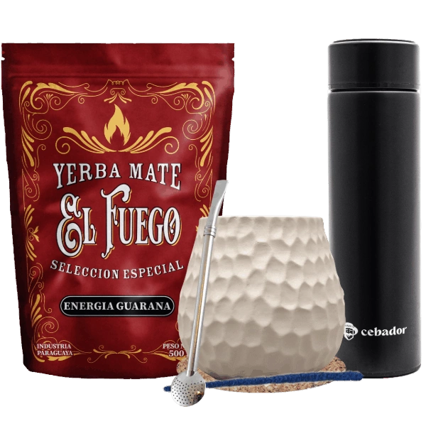 Yerba Mate -setti: El Fuego 500g + Termospullo LED + Kalebassi + Bombilla