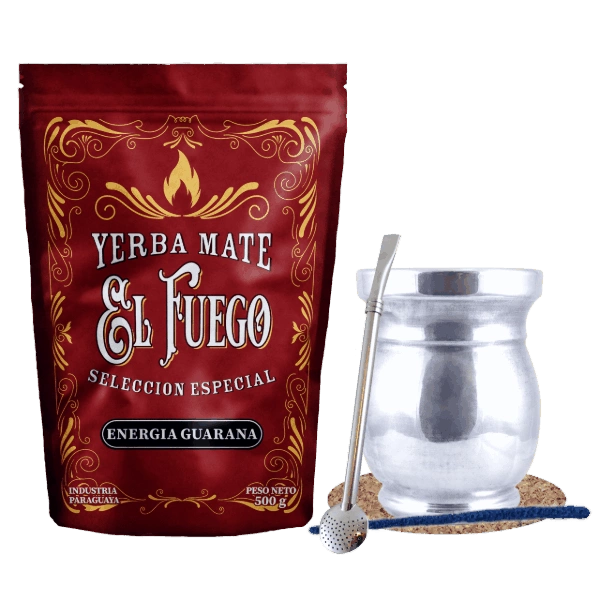 Yerba Mate -Setti: El Fuego Energia Guarana 500g + Palo Santo + Bombilla