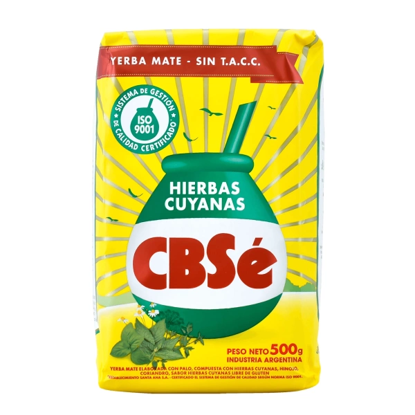 - CBSe Hierbas Cuyanas 0,5 kg 500 g on argentiinalaista yerba matea, jossa on yrttinen maku. Se on miedon makuinen, tasapainoinen ja kofeiinipitoinen. Se stimuloi hyvin. Suositellaan aloittelijoille ja edistyneille!