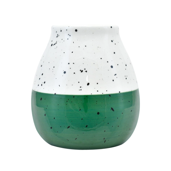 Keraaminen kalebassi "Papagayo " - kätevä, tukevasti valmistettu yerba mate -kouru, jonka tilavuus on noin 300-350 ml. Kourun muoto on saanut vaikutteita perinteisistä eteläamerikkalaisista kalabasseista. Lasitettu sisältä ja ulkoa. Päällystetty vaalealla lasitteella ja koristeltu mustilla, epäsäännöllisesti pilkullisilla kuvioilla. Pohjassa on tyylikäs vihreän värinen katkaisu. Suunnitelmallinen yerba mate -juomakouru täydentää täydellisesti jokaisen mateistien varusteita!