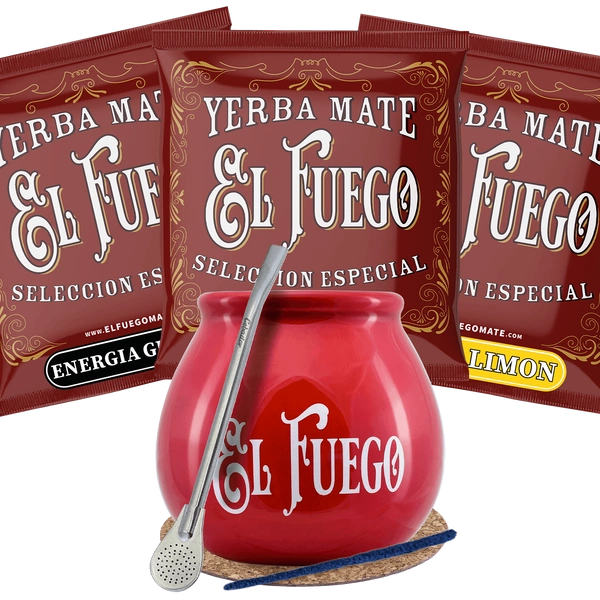 Yerba Mate El Fuego Calabash Bombilla aloitussetti