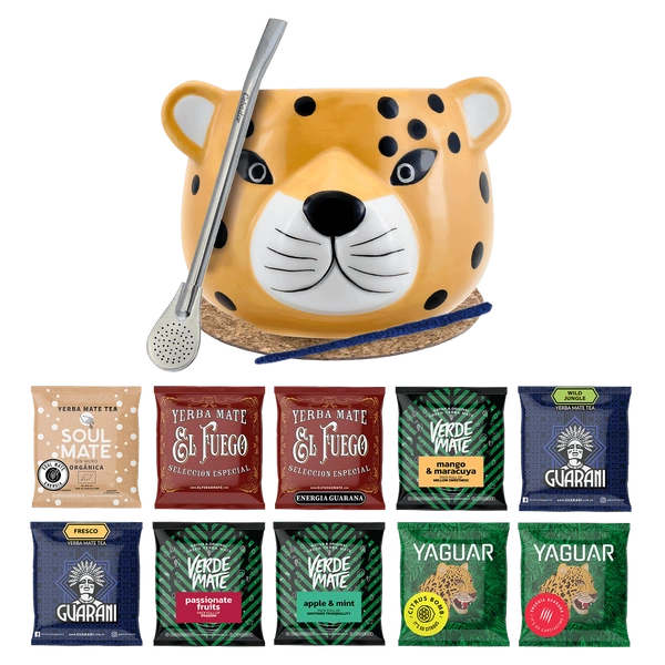 Yerba Mate setti 10x50g Calabash Gatito Bombilla