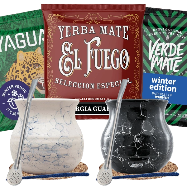Huomaa, että yerba mate -näytteiden makujen nimet löytyvät etiketin takapuolelta, aivan ainesosatietojen vierestä.