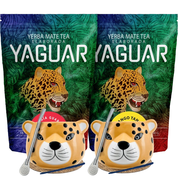 Yerba Mate -setti kahdelle: Yaguar 2x500g + 2x Kalebassi + 2x Bombilla
