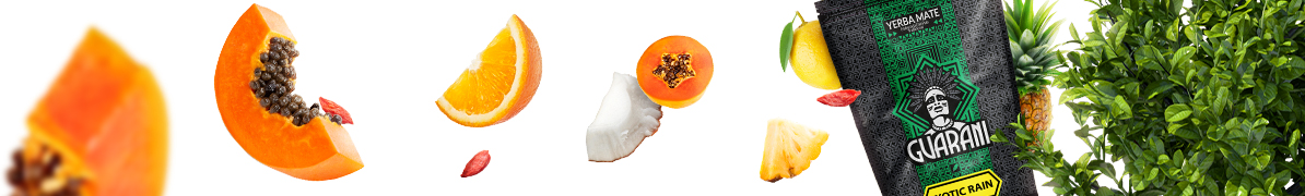 - Guarani Exotic Rain on energisoiva paraguaylainen yerba mate, jossa on voimakas, trooppinen maku, jossa on mangon, papaijan, ananaksen ja appelsiinin aromi. Ilex paraguariensiksen energisoiva voima ja hedelmäinen raikkaus vievät sinut eksoottiseen paratii