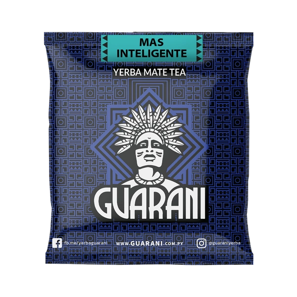 - Guarani Mas Inteligente on intensiivinen yerba mate -sekoitus, johon on lisätty guaranaa, ginsengiä ja ginkgo bilobaa. Sen rohkea sitrusmainen yrttinen maku ja luonnollinen kofeiinipitoisuus tekevät siitä loistavan valinnan hetkiin, jotka vaativat keskitt
