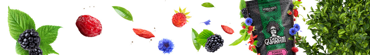 • Guarani Forest Berries on ainutlaatuinen yerba mate, jossa on makea ja hedelmäinen metsähedelmän maku, jota on rikastettu goji-marjoilla ja karpaloilla. Kevyempi ja herkempi kuin klassiset Guarani-lajikkeet, mutta silti energisoiva!