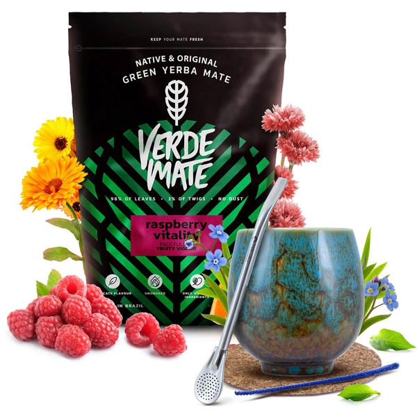 Yerba Mate set Verde Mate Vadelma 500g Calabash + Bombilla
