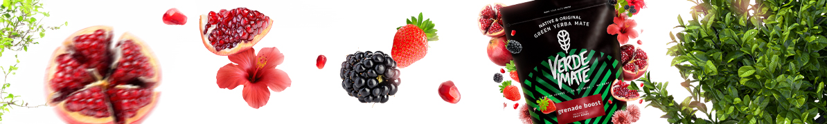 - Verde Mate Green Grenade Boost on yhdistelmä tästä maailmasta. Granaattiomenan siemenet ja makea mansikka soittavat ensimmäistä viulua, jota säestävät acerola ja stimuloiva guarana. Se saa aistisi räjähtämään. Etkö usko sitä? Katso itse!