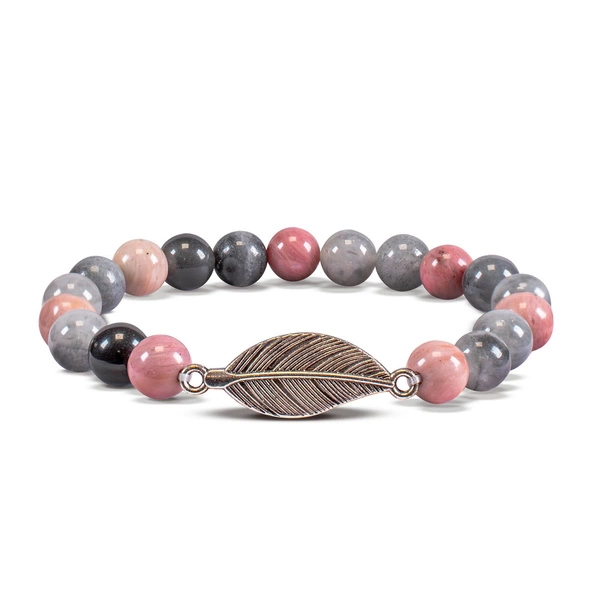 Luonnonkivistä valmistettujen helmien lisäksi rannekorussa on myös höyhenen muotoinen riipus, joka symboloi vapautta ja toivoa, mutta myös itseluottamusta ja henkistä kasvua. Monissa kulttuureissa höyhensymboli liitetään myös yhteytenä korkeampiin maailmoihin. Tämä rannekoru voi olla arvokas lisävaruste niille, jotka harrastavat meditaatiota ja etsivät keinoja parantaa keskittymistä ja sisäistä rauhaa. Samalla se voi hienovaraisen kauneutensa ja rikkaan symboliikkansa ansiosta ilahduttaa kaikkia, jotka haluavat lisätä jokapäiväiseen pukeutumiseensa elementin, joka on täynnä merkitystä ja viehätystä.