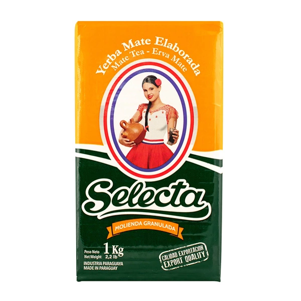 • Selecta Elaborada Con Palo Tradicional 1 kg 1000 g on klassinen paraguaylainen yerba mate, joka on valmistettu valikoiduista ilex paraguariensis -lehdistä. Tutustu perinteen makuun!