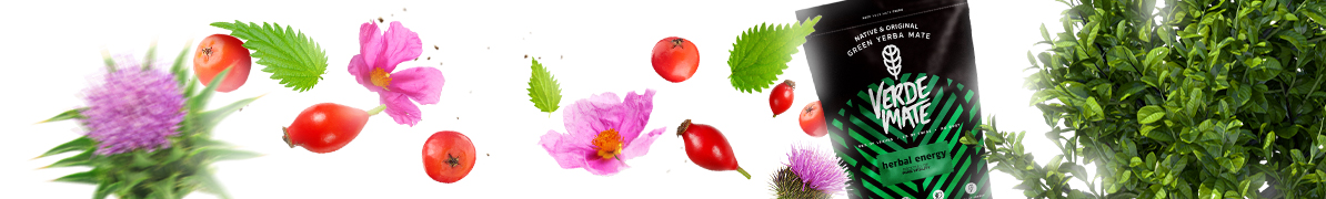 - Verde Mate Green Herbal Energy on yrttipitoinen yerba mate, jossa on virkistävä maku. Sisältää muun muassa vihreää teetä, minttua ja villiruusua. Luonnollinen piristysruiske aktiivisille ihmisille - sopii erinomaisesti jokapäiväiseen käyttöön, töissä tai