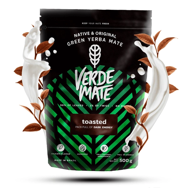• Verde Mate Green Toasted on paahdettu yerba mate, jossa on mieto, karamellimainen maku. 100 % luonnollinen, ilman lisäaineita. Täydellinen kuumana tai kylmänä - veden tai maidon kanssa.