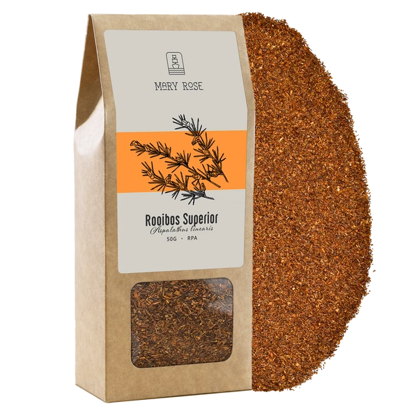 • Rooibos Superior on valmistettu Etelä-Afrikan Cedarbergin vuoristoalueella kasvatetuista kasveista. Tuoksulle on ominaista kirkkaan meripihkanvärinen väri ja hienovarainen maku, jossa on ihana hunajan vivahde.