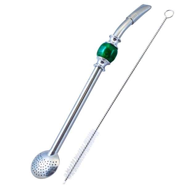 - Iso bombilla "Bomba" 22 cm yerba matelle, jossa on värillinen jäähdytyskivi suukappaleessa. Ruostumaton teräs takaa kestävyyden ja kestävyyden mekaanisia vaurioita ja korkeita lämpötiloja vastaan. Yksinkertainen muotoilu antaa eleganssia ja toimivuutta.