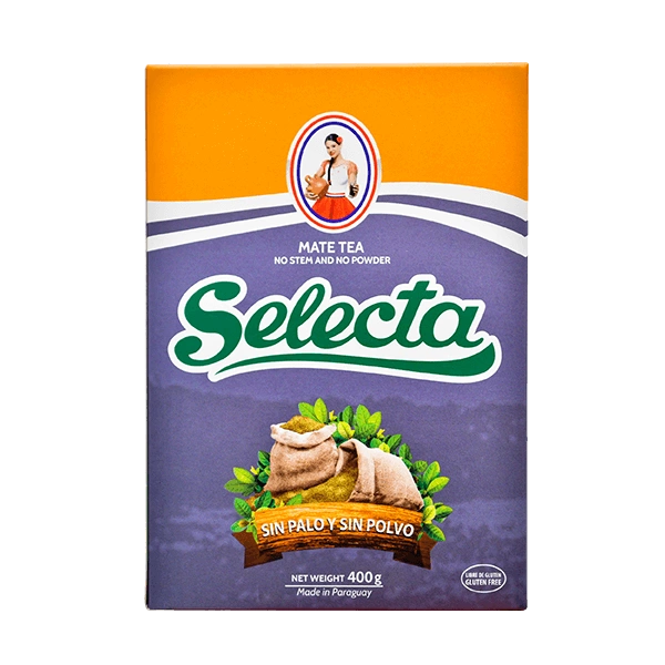 - Selecta Despalada Sin Palo - tyypillinen paraguaylainen yerba mate, jota valmistaa yksi maan tunnetuimmista tuotemerkeistä.Pakkaus sisältää yerba matea ilman pölyä ja oksia.