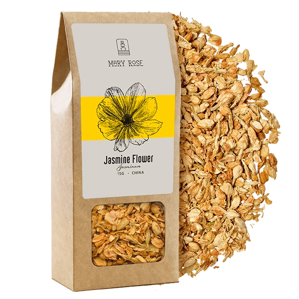 - Jasmine 15 g kukkia Mary Rose -merkiltä, jolla perinteisesti uskotaan olevan rauhoittavia ja rentouttavia ominaisuuksia. Joissakin kulttuureissa jasmiini-uutteita pidetään myös luonnollisina aphrodisiaceina.