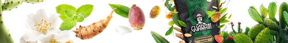 • Guarani Ashwagandha Cactus on Paraguaysta peräisin oleva yerba mate, johon on lisätty ashwagandhaa, ginsengiä, piikkipihlajan kukkaa ja jasmiinia. Voimakas maku, luonnollinen kofeiini ja eksoottinen sekoitus energiaa ja rentouttavia hetkiä varten.