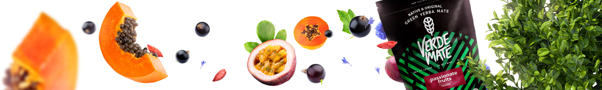 - Verde Mate Green Passionate Fruits on uskomattoman rikas makujen yhdistelmä, jota et voi vastustaa! Houkutteleva yhdistelmä yerba matea ja erilaisia hedelmiä: papaijaa, mustaherukkaa, goji-marjoja ja passionhedelmää.