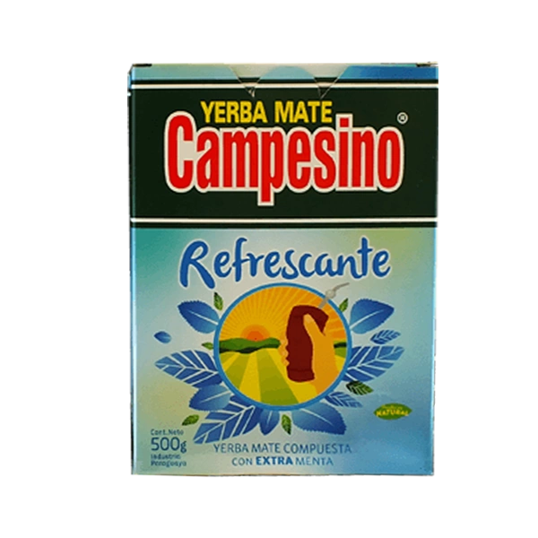 - Yerba Mate Campesino Refrescante 500 g 0,5 kg on virkistävä yerba mate koostumus, jossa on mintunlehtiä ja minttuöljyä. Se on erinomainen piriste ja virkistävä.